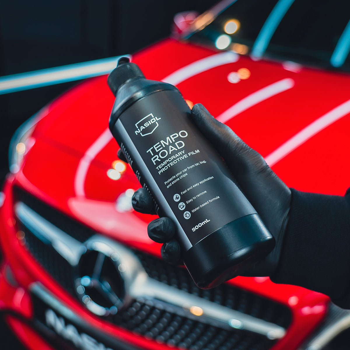 Nasiol TempoRoad creates a water-based protective film that acts as a shield, preventing bug stains and sand from adhering to your vehicle's surface, especially in areas prone to sandstorms. Be prepared and safeguard your vehicle from unexpected elements while on the road with Nasiol TempoRoad's unique, temporary application.